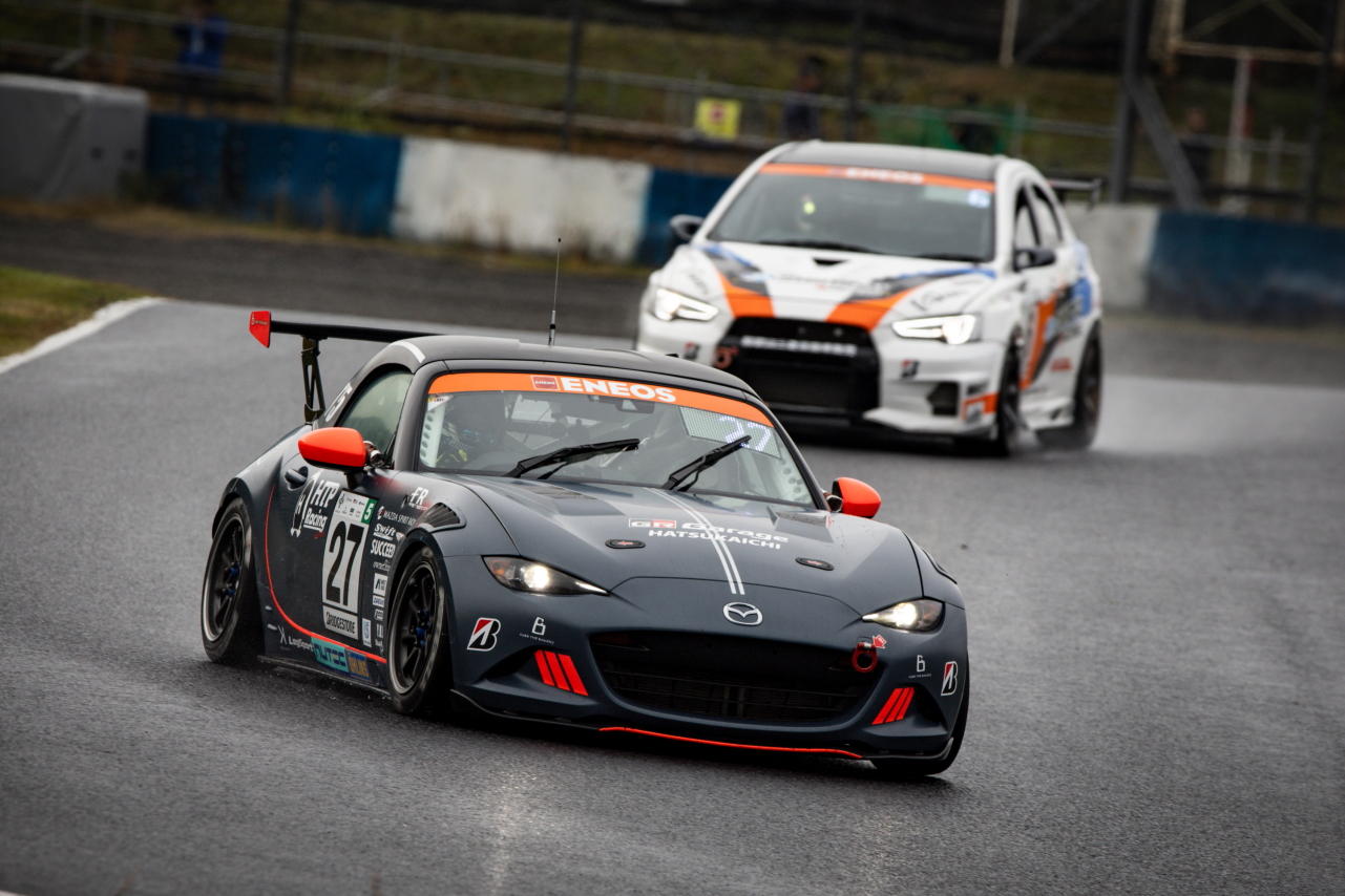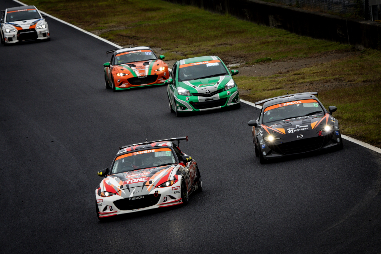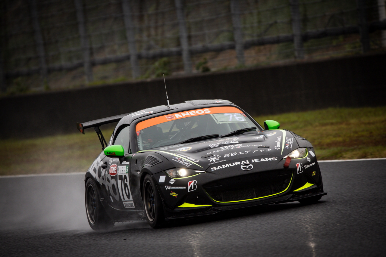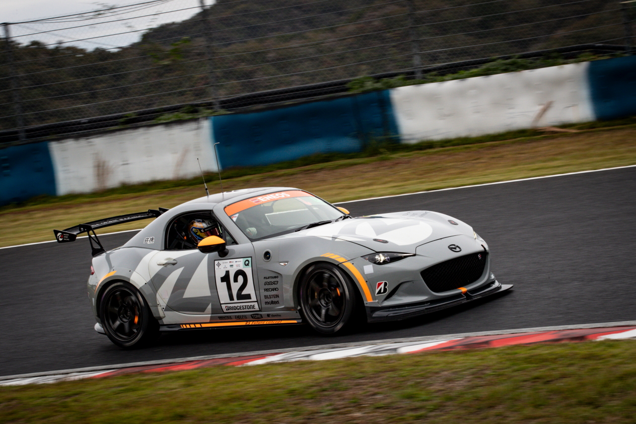 マツダのチャレンジプログラムによって選ばれたドライバーが乗る120号車倶楽部MAZDA SPIRIT RACING ROADSTERは、スタートで吉田恭将が一気にポジションを上げ、難しい路面コンディションの中、久米田から上田にバトンを繋いでいきました。しかし、Bドライバー最大運転時間が規定より3分オーバーしていたことにより2周減算のペナルティを受けることとなり、記録は6位となっています。助監督の廣田賢興は、「リザルトはともかく、ひとり一人が決められた目標に対してやるべきことをやってくれたおかげでチームはまとまり、すごくよい形でシーズンを締めくくれたと思います。しかし、Bドライバー乗車時間オーバーというミスを犯してしまったことは残念であり、責任を感じます。しかし、チームの成長として見てみると、開幕のもてぎから飛躍的な成長を遂げていると思います。来年もまた楽しみです」、とコメントしています。