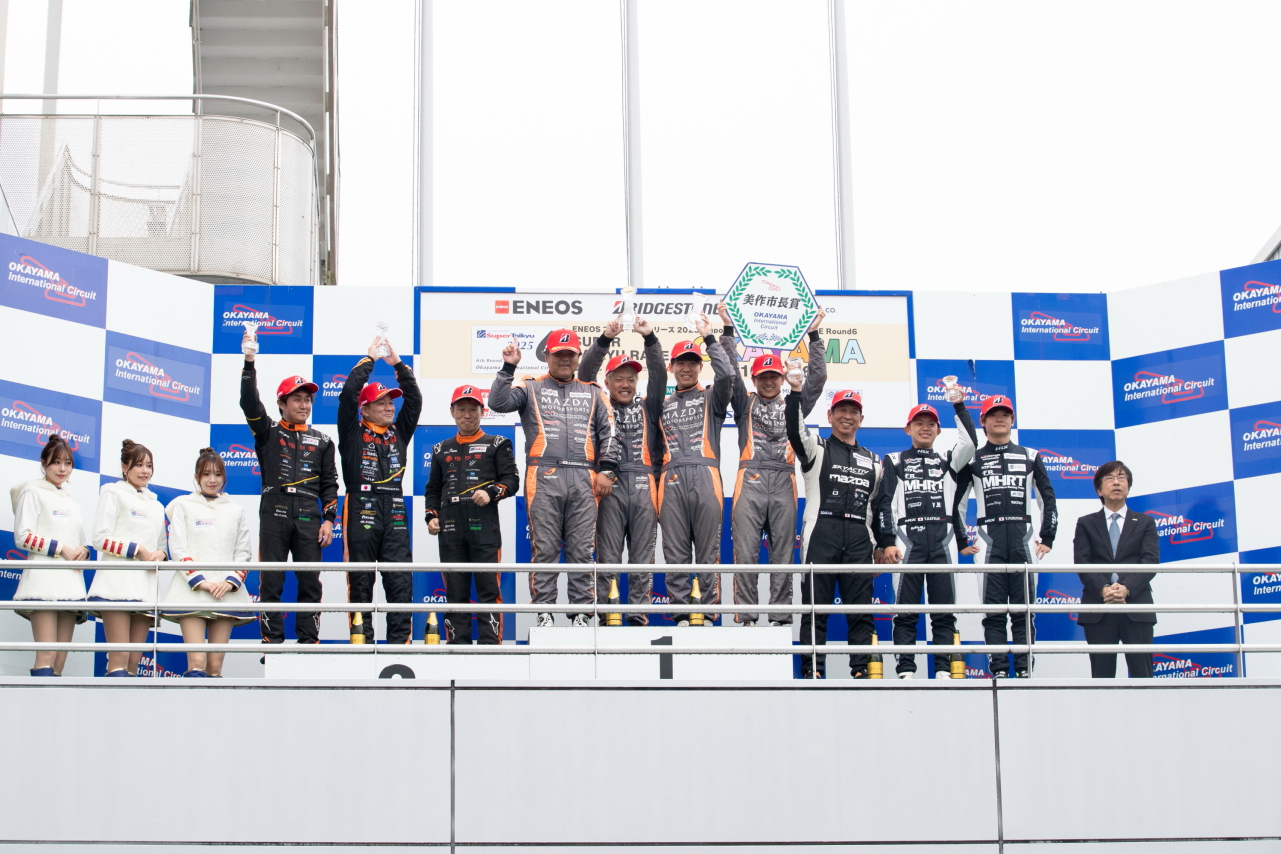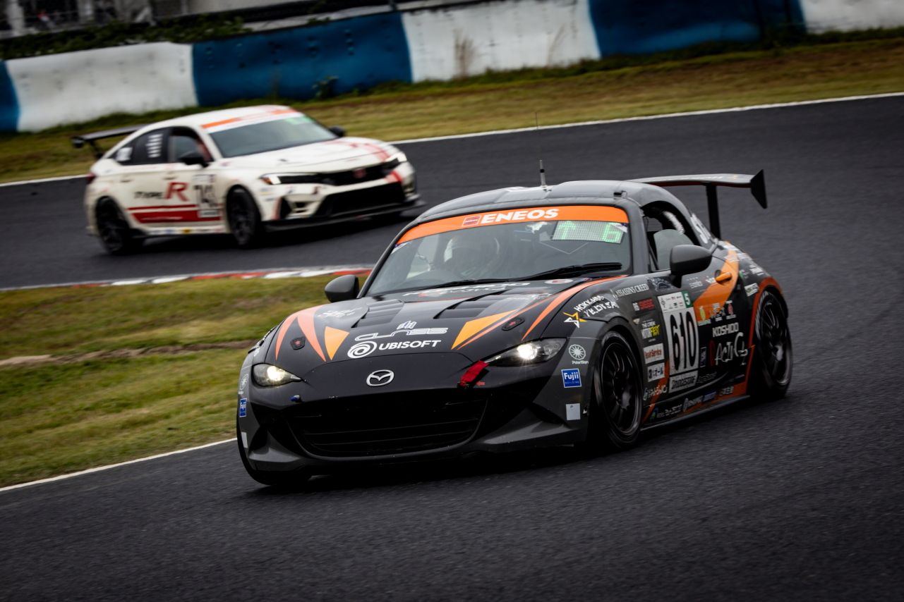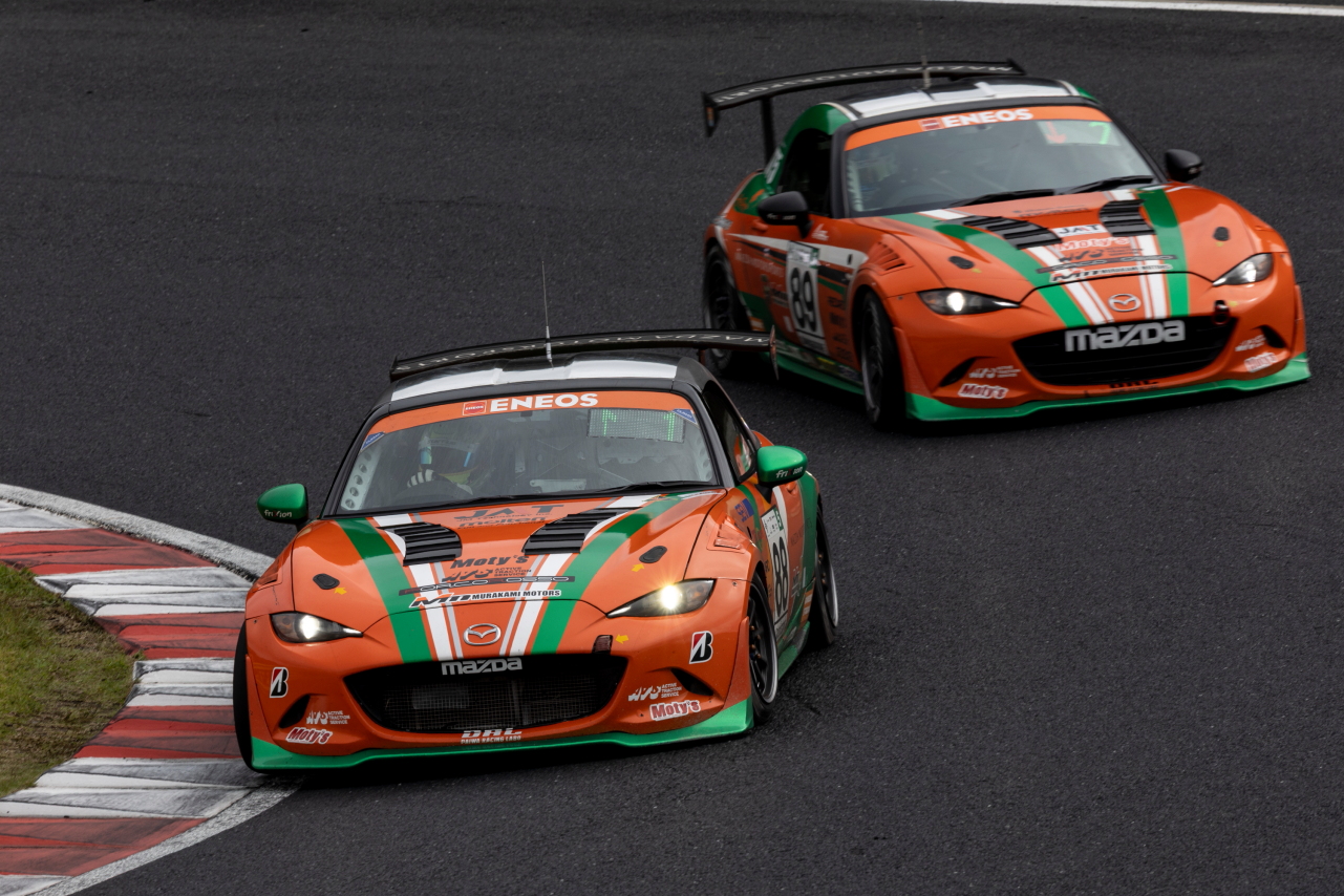 10月25〜26日、ENEOS スーパー耐久シリーズ 2025 Empowered by BRIDGESTONE第6戦 「SUPER TAIKYU in OKAYAMA」が岡山国際サーキットで開催され、88号車 村上モータースMAZDAロードスター(村上博幸/太田達也/黒沼聖那/吉田綜一郎)がST5Rクラスのポールトゥウィン。88号車は念願のクラスシリーズチャンピオンを獲得しています。また、最後まで88号車とタイトルを競い合った610号車KOSHIDO RACINGロードスター(佐藤元春/柴田優作/浅井康児)が2位、27号車Maple Hiroshima MAZDA ROADSTER(杉野治彦/古谷悠河/勝木崇文)が3位表彰台に上がりました。