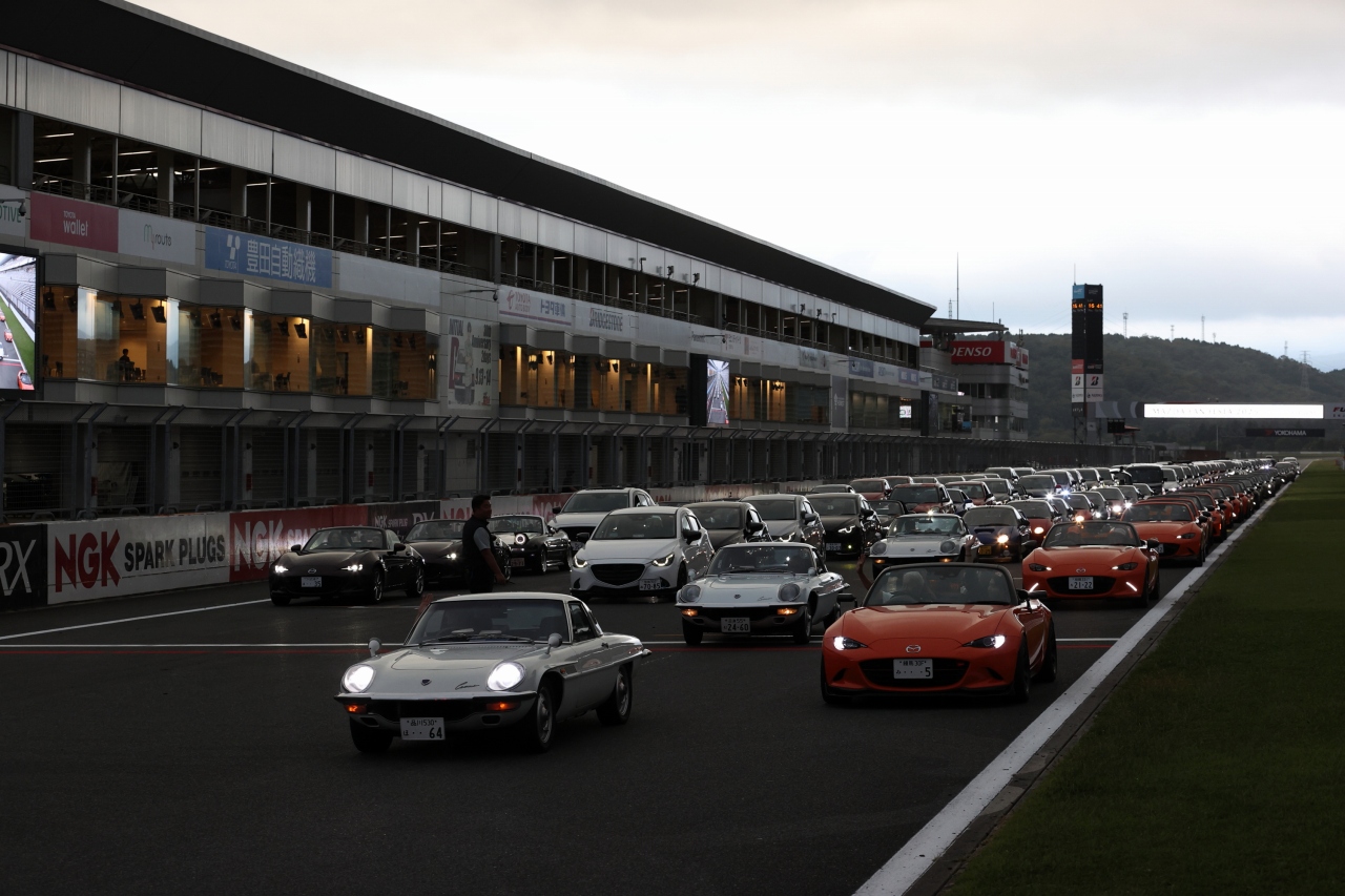 レーシングコースを約2周半とホームストレートで停車して記念撮影もできるマツダ車限定のパレードランは2日間で4回実施され、計930台が参加。美しくカスタムされたクルマも多く、皆さんの愛車熱を強く感じました。