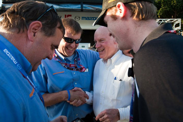 Dyson started the LMP1 Mazda Lola entry for the iconic eleven turn, two-mile California coastal street-track. He was passed by the Muscle Milk Aston Martin shortly after the start, but maintained a close second through his stint. He handed the car over to teammate Guy Smith sixteen seconds out of first a little over an hour into the two-hour race. Guy fought a track that continued to lose grip as the race wore on, and finished second when the race finished under yellow for an accident eight minutes from the end.