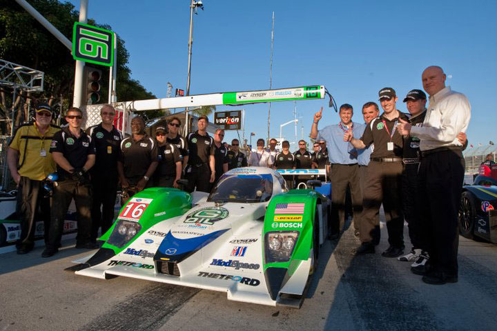 Dyson Racing capped off their Long Beach weekend with a second place finish in today's American Le Mans Series race. It was the best finish at Long Beach for the team and they leave the weekend with the LMP1 points lead. The #16 G-OIL/ModSpace/Construct Corps Mazda Lola was fastest in the only practice session yesterday in addition to starting the race from the pole position.