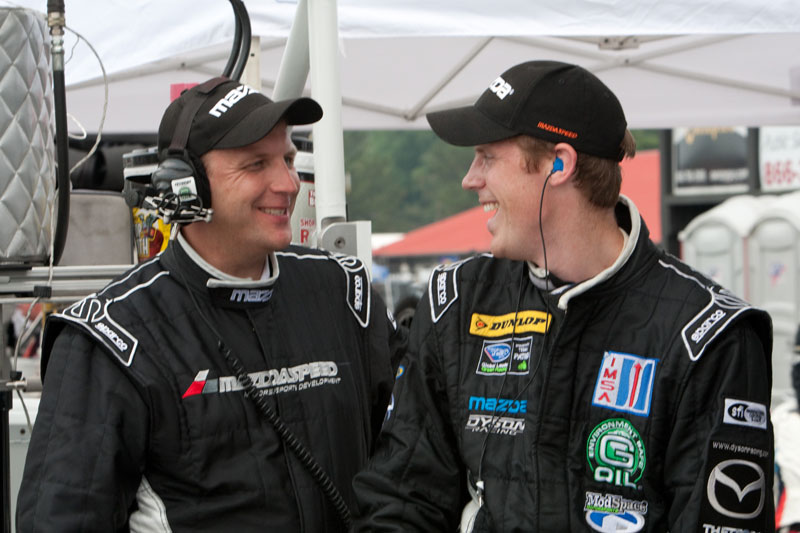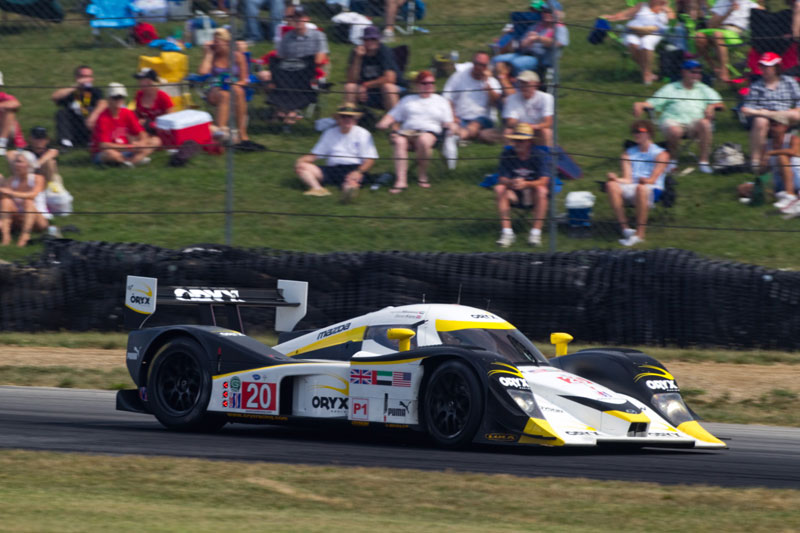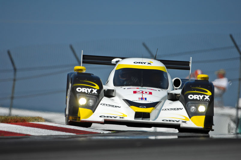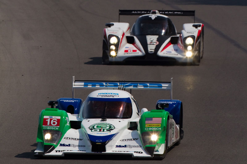 It was that kind of race: the pace car ran out of gas and the race was red flagged ten minutes from the end for rain. Chris Dyson and Guy Smith navigated the Mid-Ohio Sports Car Challenge and brought their #16 G-OIL Modspace/Construct Corps Lola Mazda home in second place, maintaining their ALMS championship points lead. #20 Humaid Al Masaood and Steven Kane were running third when an incident fifty-five minutes into the event ended their race early.