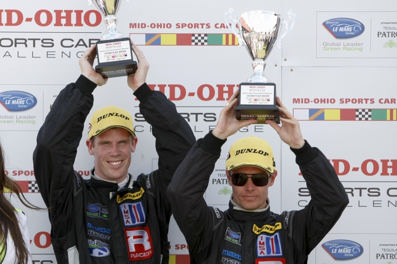 Dyson Racing pushed their podium total above 200 today at the Mid-Ohio Sports Car Challenge. The team added numbers 200 and 201 to their tally as Chris Dyson and Guy Smith came in second overall in the #16 Modspace Mazda entry and Michael Marsal and Eric Lux brought home the #20 Dyson Racing car third in the P1 class.