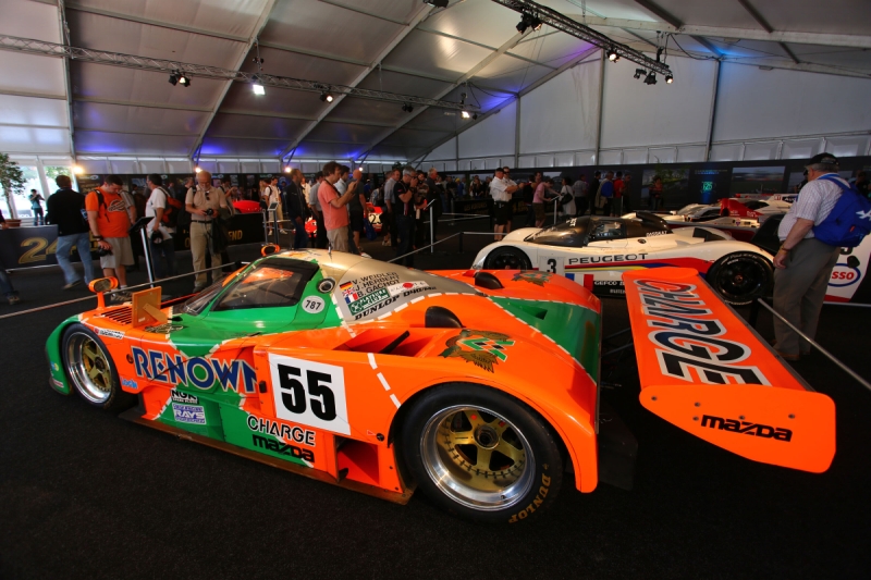 Mazda received an invitation to the 90th anniversary event after the Mazda 787B was chosen as the favorite Le Mans car of the 1990s, based upon Internet voting and votes cast by experts for the best Le Mans car. The Mazda 787B, which is normally on display at the Mazda Museum in Hiroshima, was packed again and flown by air to France. Arriving on Monday, June 17, the car was placed in the “Legendary Le Mans Cars” pavilion within the Circuit de la Sarthe, and put on public display starting on the 19th. Other vehicles chosen in the same way as the Mazda 787B included: a Bentley Speed 6 from the 1920s, an Alfa Romeo 8C from the 1930s, a Ferrari 166MM from the 1940s, a Jaguar D Type from the 1950s, a Ford GT40 MKII from the 1960s, a Porsche 917K from the 1970s, a Porsche 962C from the 1980s, a Peugeot 905 from the 1990s (two vehicles were chosen for this generation), an Audi R10 TDI from the 2000s, and an Audi R18 e-tron Quattro from the 2010s, for a total of ten vehicles. Shortly after 12:30 on the 22nd, before the start of this year's race, these legendary machines formed a line and conducted a parade run around the Circuit de la Sarthe. The man behind the wheel of the Mazda 787B was Yojiro Terada, a former factory driver for Mazda, and reflecting on the parade run, he stated, “It was a very emotional experience to be able to run with all of the other machines, with all of the marshals at every post waving their hands. I am honored and thankful for this opportunity.”