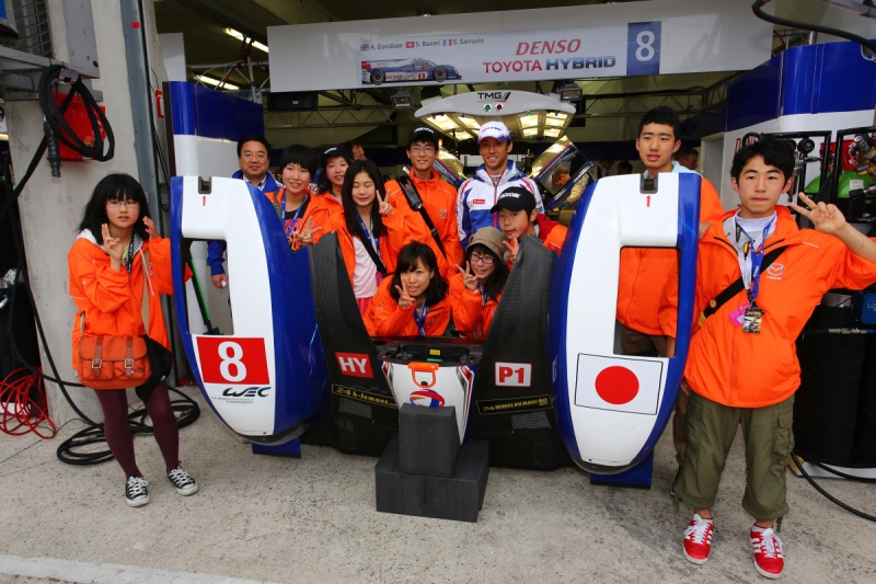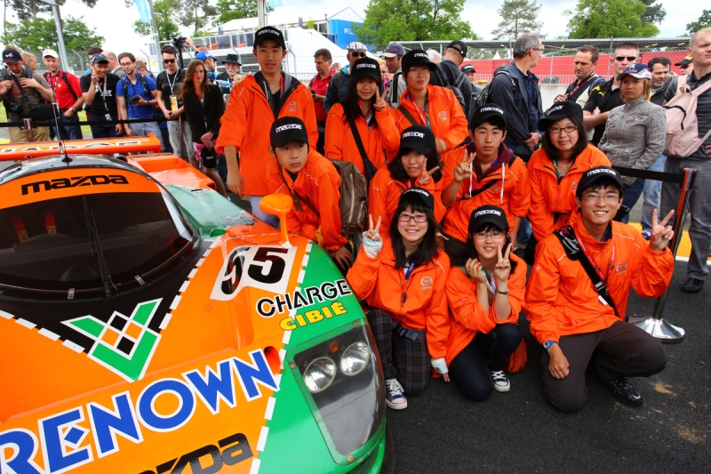 The other topic was Mazda's backing of a Le Mans homestay program planned by an NPO which targeted junior and senior high school students living in areas devastated by the Great East Japan Earthquake. Ten students left Japan on June 16, and after attending classes for French language and culture within the city of Le Mans, they went on a “field trip” to the circuit the following weekend. Dressed in matching orange jackets and caps, the students read a statement to Mazda Executive Officer Masahiro Moro, who had arrived to greet them: “Thank you for giving us such as wonderful experience. We will use these experiences to reach for our dreams.” The program was also sponsored by the ACO, Michelin Tires, and Toyota's TMG Team, and attracted attention from the local media as well.