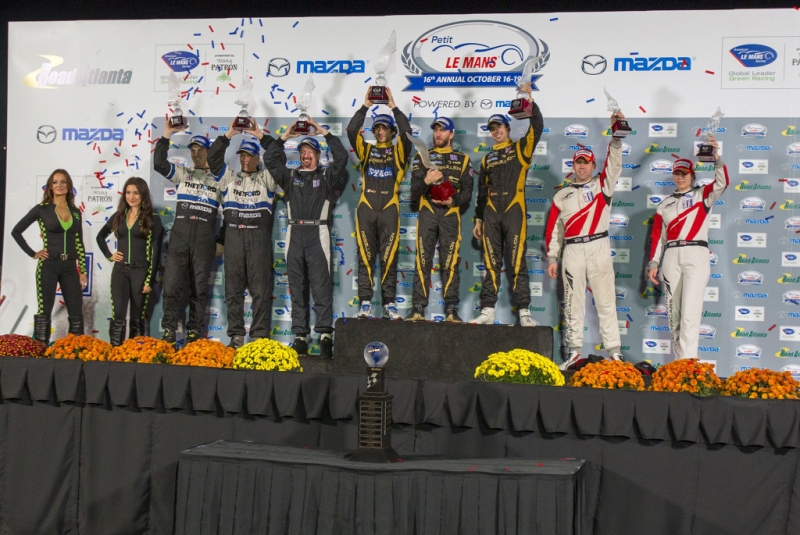 Dyson Racing ended their thirtieth anniversary year and the final race of the American Le Mans Series with a second place P1 finish at the Petit Le Mans Powered by Mazda at Road Atlanta held on 19th of October. The nine and a half hour, thousand mile race produced eight yellow periods and alternated between wet and dry track conditions for the first four hours. The #16 Lola Mazda of Chris Dyson, Tony Burgess and Chris McMurry ran strongly through it all and ended the season on a high note.