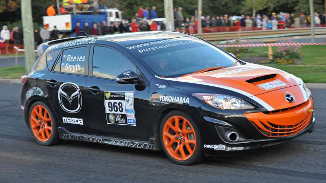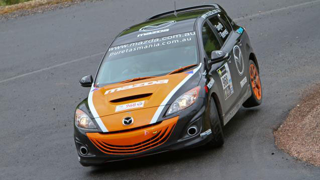 Finishing ninth outright ahead of Nissan GT-Rs, Subaru WRXs and an Audi TTRS, the turbocharged Mazda3 MPS continued to punch above its weight over today's seven challenging stages.