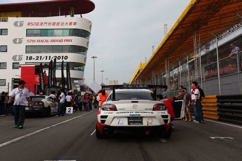 The 57th running of the Macau Grand Prix was held from November 18th to 21st on a street circuit located in the centre of the city. The Road Sports Challenge race, in which the Knight Sports RX-8 competed, was held on the final day of the meet, but the car was involved in an accident just after the beginning of the race, and as a result its event was over after just 5 seconds.