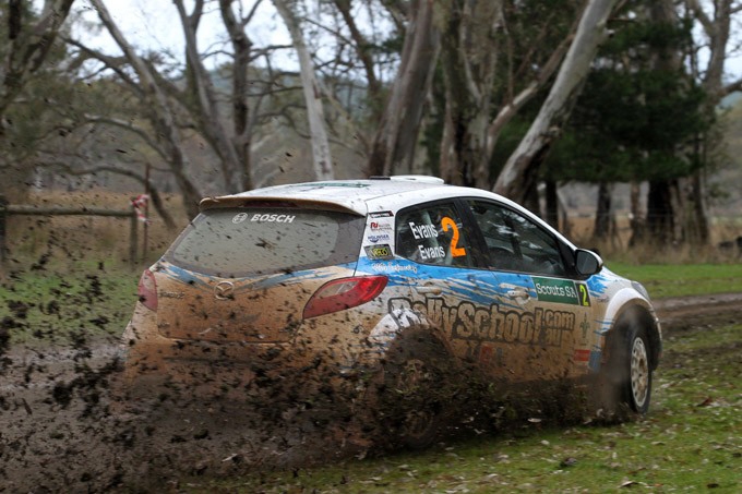 Four-time Australian Rally Champion Simon Evans' return to the series in the new Mazda2 saw him take second in the rally despite losing time on Day 3's third special stage after becoming stuck in mud.